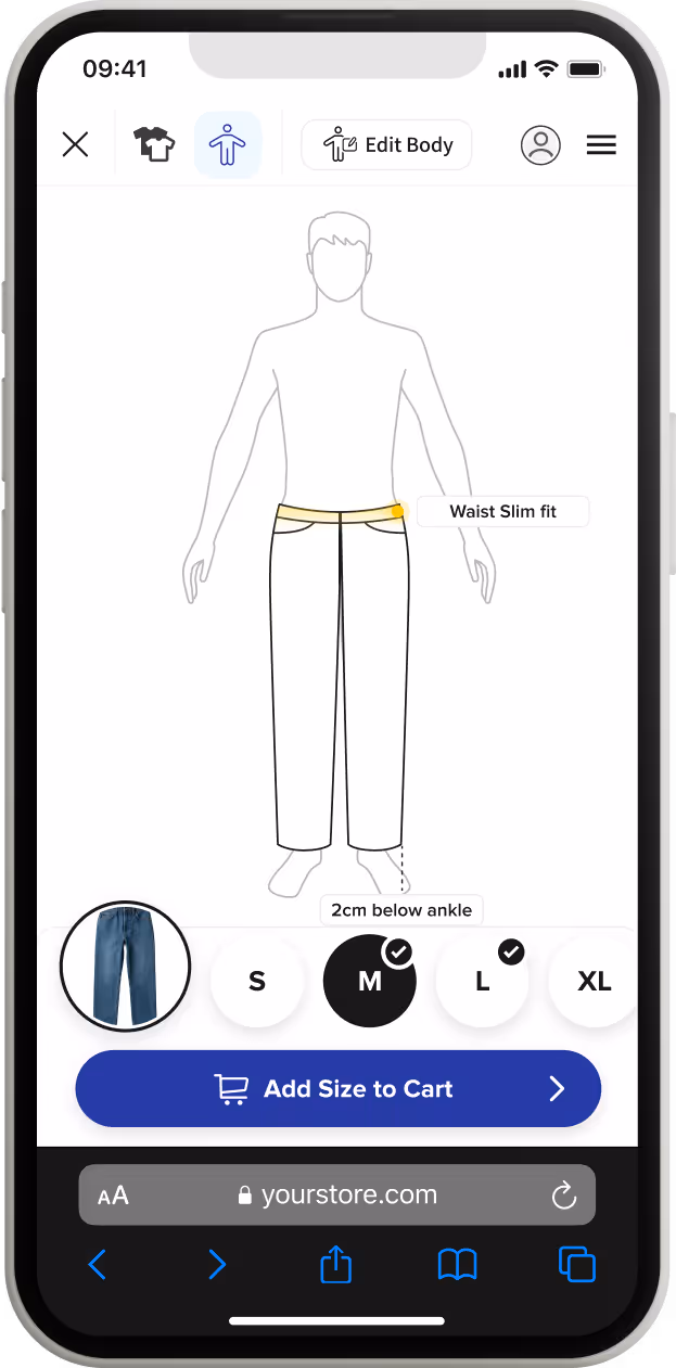 Our unique size and fit service sits right on your product pages and takes the guesswork out of e-commerce.