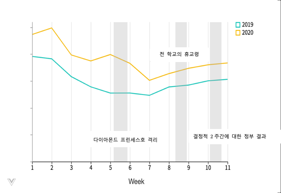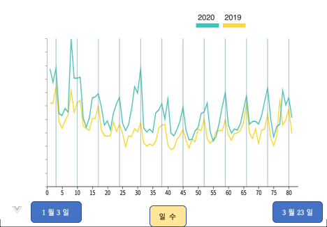 기간 : 2019.03.01 - 2019.03.25 vs 2020.02.28 - 2020.03.23