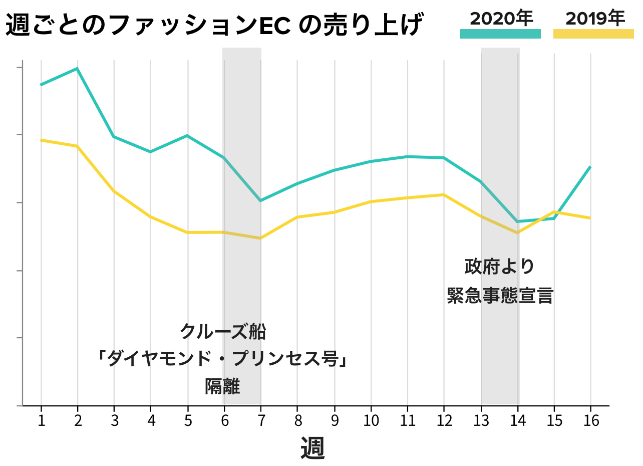 私たちの分析したデータは、COVID-19の影響がなければ、オンラインファッションの売り上げは前年比約20%超増加していた可能性が高いことを示しています。おそらくオンラインファッションにとって非常に力強い年となっていたでしょう。