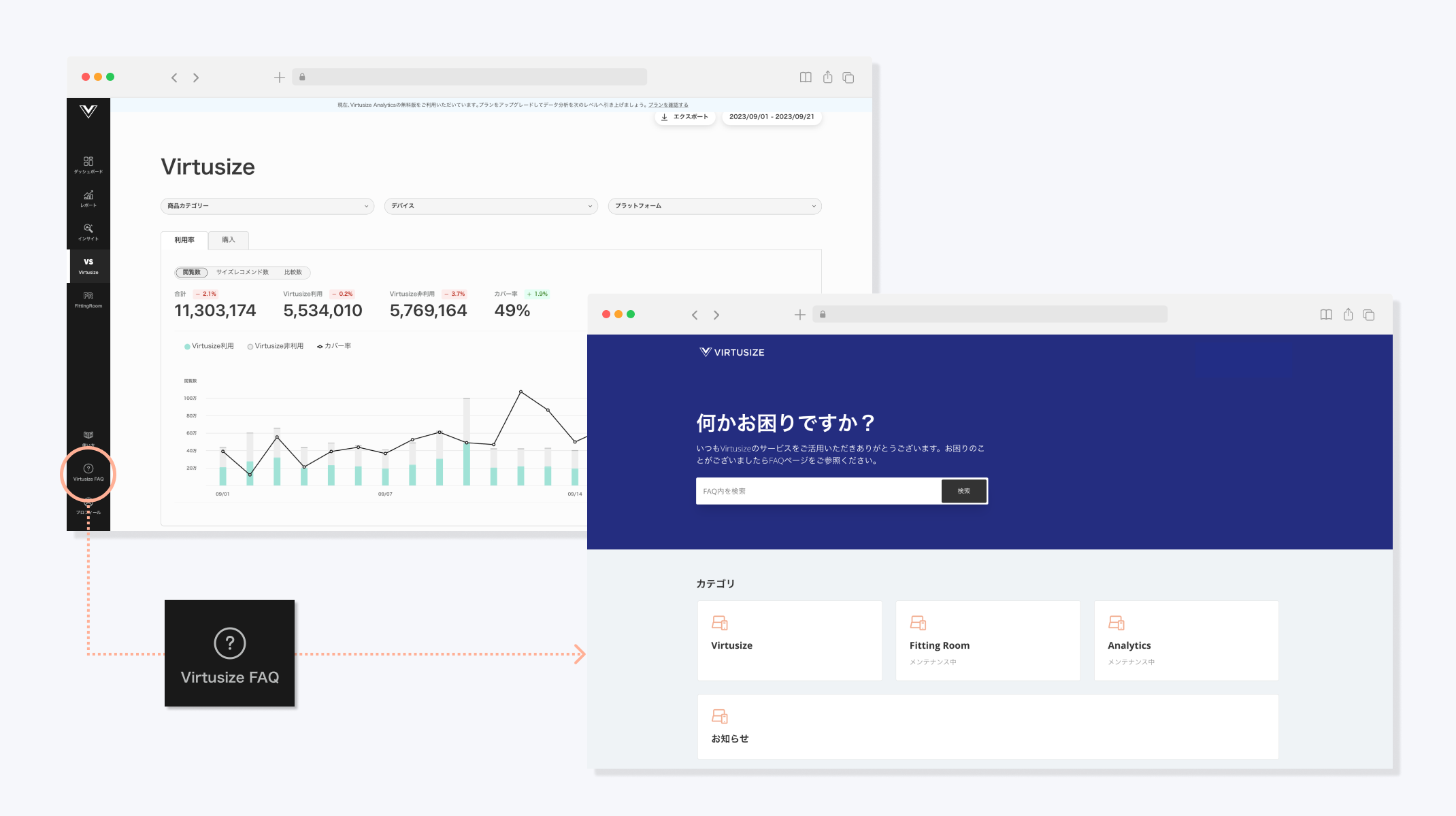 現在はVirtusizeに関するFAQのみ提供しておりますが、FittingRoomやAnalyticsに関するFAQページも整備していく予定でございます。