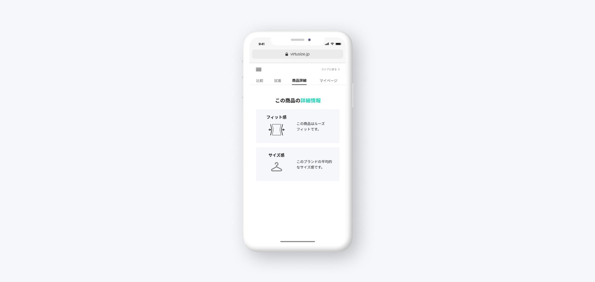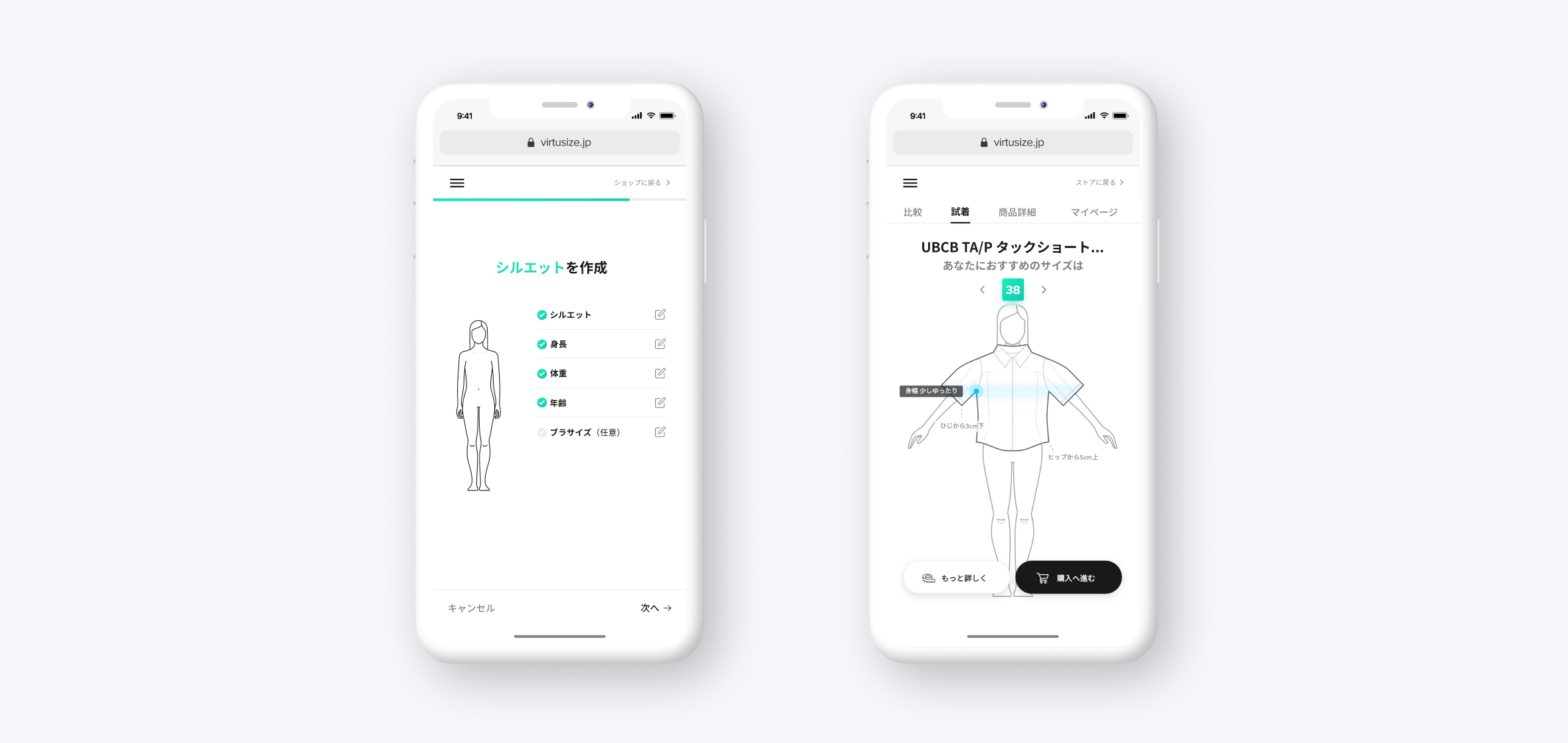 We understand that everyone comes in different shapes and sizes. Our unique Virtusize data-driven size and fit service uses algorithms to create accurate personalized user silhouettes. Through simple and beautiful visualizations, shoppers can now try on items and see exactly how they might fit, just like in a real store. It's the next-generation dressing room minus all the guesswork.
