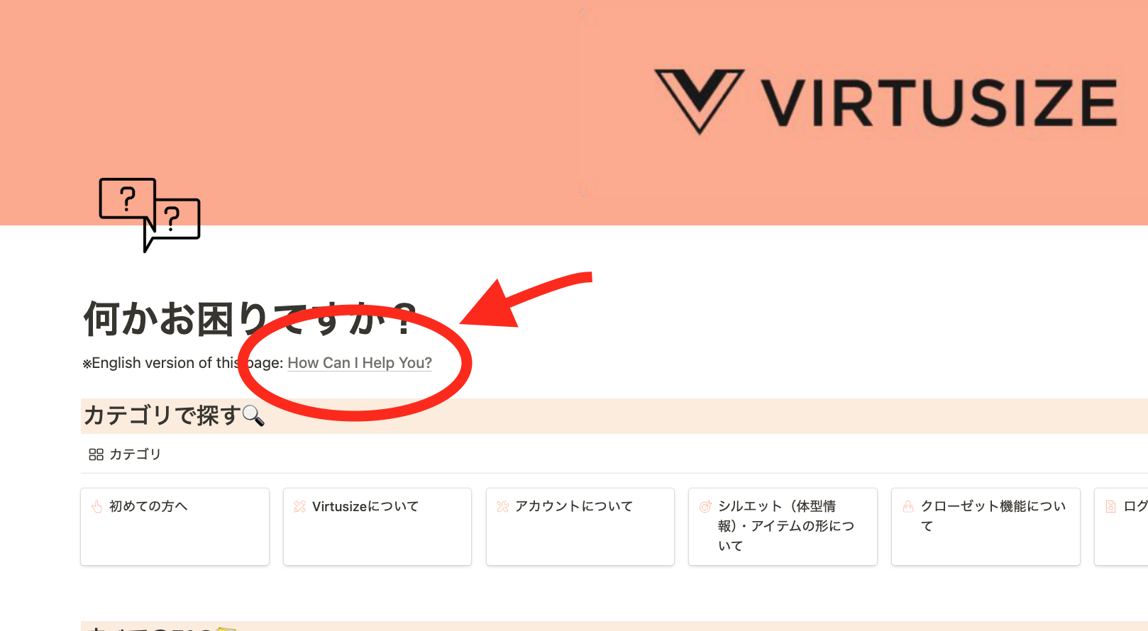 FAQ 英語ページ:https://virtusize.notion.site/How-Can-I-Help-You-ac6af889755f4cb6a215dbe5f46b51e9