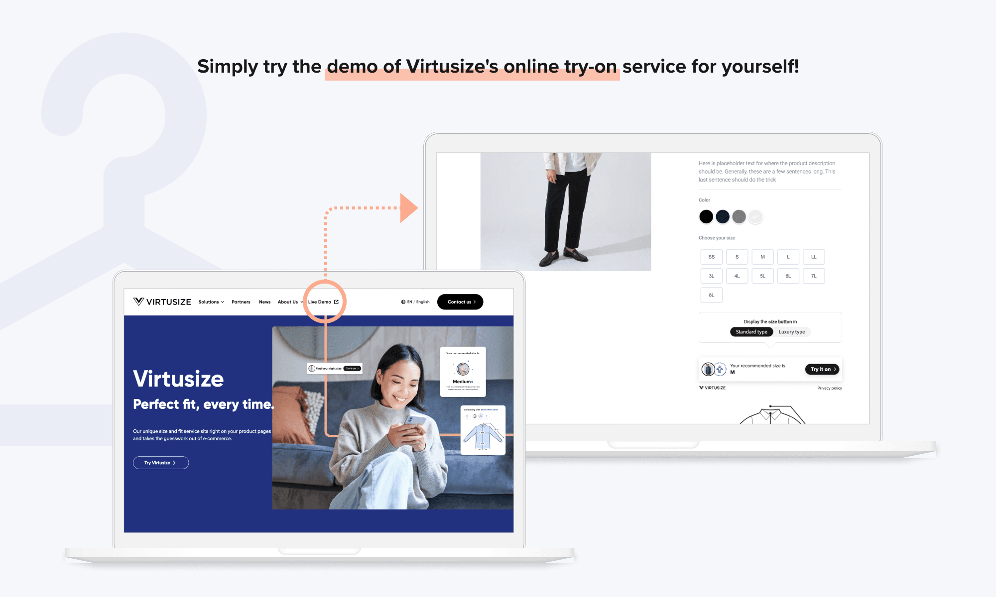 A new client demo page for the “Virtusize” online fitting service is now available on the website. It allows customers to get a more realistic picture of the product before they buy it.