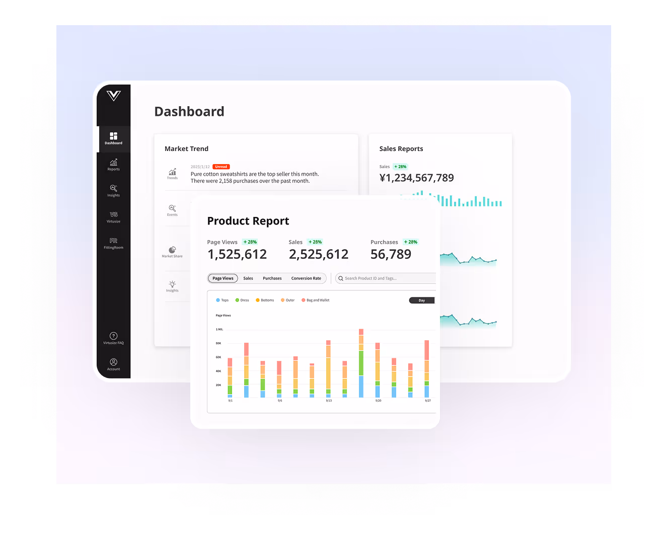 データコネクト は、Virtusizeが持つ重要なデータ(サイズ、体型、閲覧パターン、 ユーザーの好みのテイスト、商品属性データなど)を、CRM・CDP・メールに直接連携し、 マーケティングに活用することができます。さらに、Virtusizeは 画像認識AI を利用して商品情報を把握するため、運用負担を増やすことなく、より詳細な商品データを取得できます。