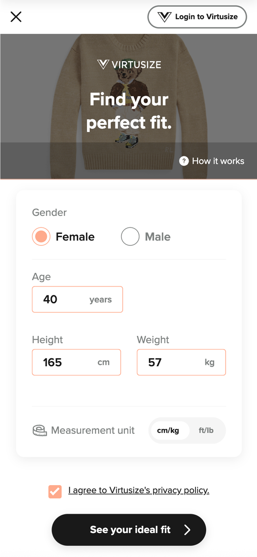 Try out Virtusize online now and get you right fit!