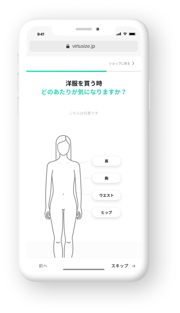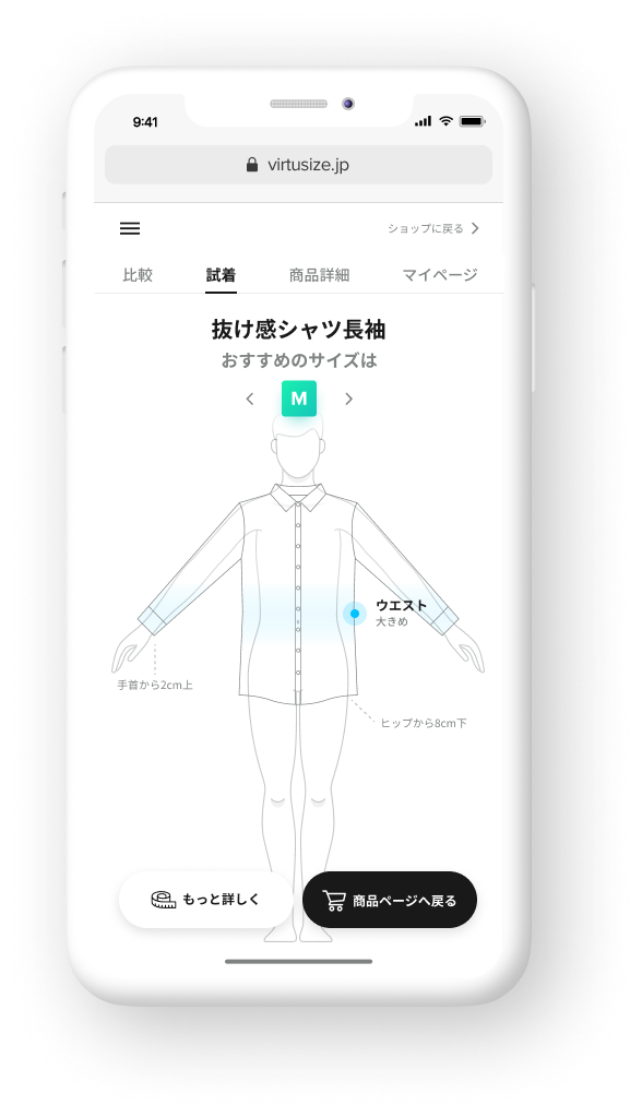 We understand that everyone comes in different shapes and sizes. Our unique Virtusize data-driven size and fit service uses algorithms to create accurate personalized user silhouettes. Through simple and beautiful visualizations, shoppers can now try on items and see exactly how they might fit, just like in a real store. It's the next-generation dressing room minus all the guesswork.