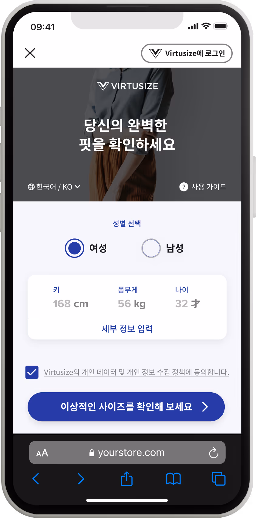 상품이 자신의 체형에 어떻게 맞을지 눈으로 직접 확인할 수 있습니다.
