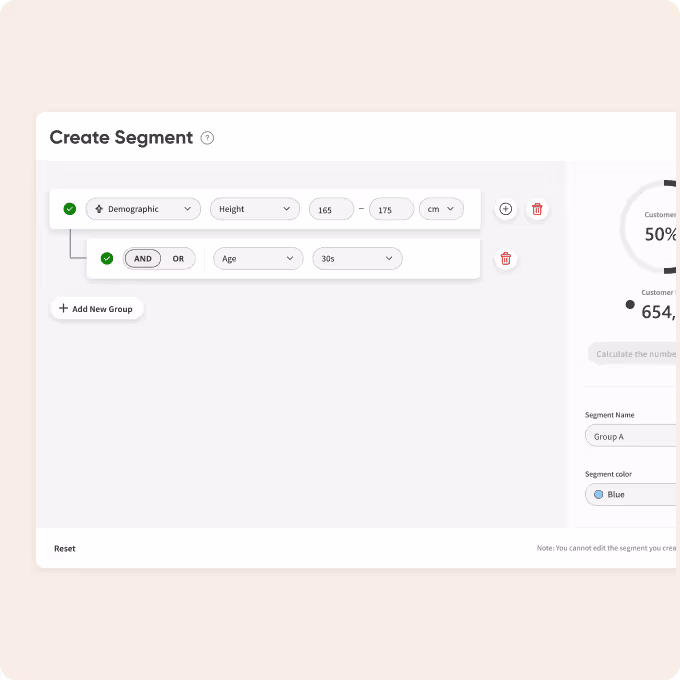 By using body data, you can create a customer segment by your own. Set body data you want to track and create a unique segment group. Track what type of products, brands those users are buying in your store.
